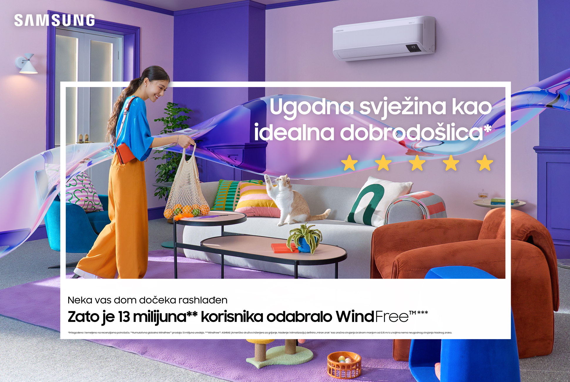 Samsung Wind-Free™ AVANT predstavlja vrh ponude klima uređaja, kombinirajući naprednu tehnologiju, moderan dizajn i maksimalnu udobnost. Zahvaljujući Wind-Free™ tehnologiji, zrak se nježno raspoređuje kroz tisuće mikro-otvora, čime se eliminira neugodno direktno puhanje i stvara ugodna, ravnomjerna klima u prostoru.